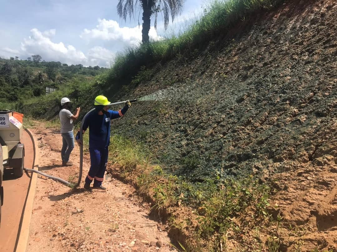 Alm de otimizar diversos processos de preparao do solo para o plantio em uma nica etapa, a Hidrossemeadura tambm possibilita o plantio em locais de difcil acesso, praticamente em qualquer ngulo, seja plano, inclinado ou mesmo negativo. A Hidrossemeadura possibilita o plantio em superfcies verticais desde o cho, sem a necessidade de trabalhadores pendurados para a fixao de biomantas ou coveamento e picoteamento da superfcie, podendo ser denominada por isso como uma hidromanta projetada, oferecendo maior segurana e menor tempo de trabalho e necessitando de menos colaboradores para a operao que pode ser facilmente realizada por qualquer pessoa, sem experincia prvia ou pr requisitos tcnicos. Os diversos tipos de bicos e mangueiras permitem o que o jateamento ocorra das formas mais versteis e convenientes para cada situao, seja pela possibilidade de estender as mangueiras at grandes distncias e alturas longe do equipamento, seja pelas configuraes do jato com diferentes tipos de bicos, permitindo direcionar com grande preciso o jateamento dos insumos especiais da Hidrossemeadura, assim pode-se desenhar na superfcie com jatos largos ou finos, jateando e desenhando largas faixas ou linhas bem definidas, adentrando em brechas, rachaduras e falhas, se adequando perfeitamente aos relevos da superfcie alvo, sem a necessidade de enterrar as sementes pois os insumos que formam a soluo especial desta tcnica resultam em soluo adesiva de tima aderncia que manter as sementes hidratadas, nutridas, cobertas e protegidas em camada de fibras tingidas de verde para possibilitar a marcao visual que permite identificar e medir as reas jateadas oferecendo ainda resultado esttico imediato.